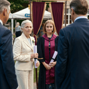 The graduation ceremony stretched across the manicured lawn like a postcard of American triumph—burgundy and gold banners, folding chairs squared into neat ranks,…