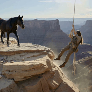 A herd of wild mustangs stopped in the middle of the desert when they spotted a female park ranger hanging off a cliff — thirty seconds later, what they did left the entire rescue team speechless.