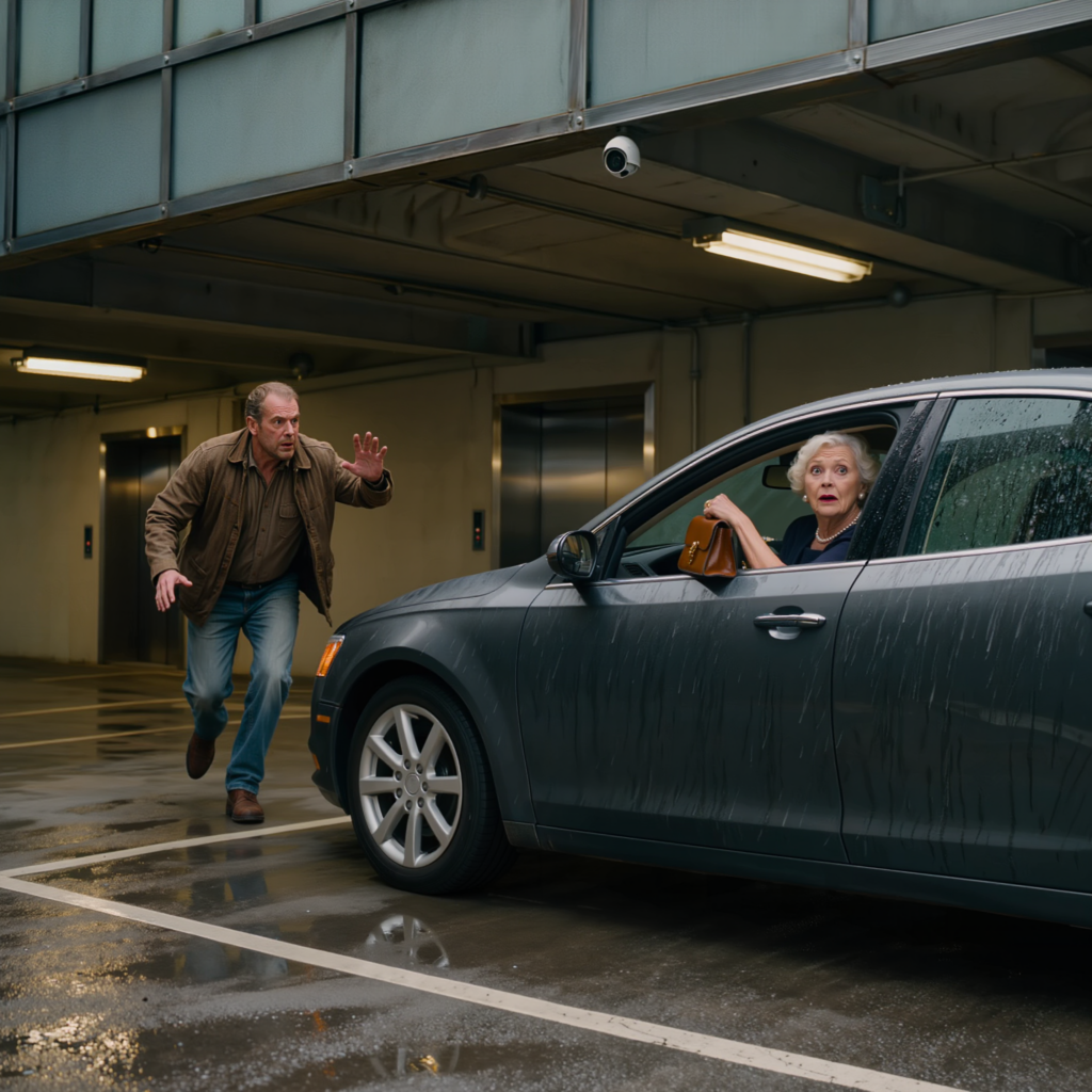 The underground garage beneath Bennett & Cole smelled like oil, damp cement, and old exhaust. Somewhere deeper in the structure, a car alarm chirped and cut off. My dashboard clock said 1:47 p.m. I had thirteen minutes before the meeting that was supposed to settle my husband’s estate and, with it, the worst chapter of my life. I turned my head toward the voice and saw a man rushing from behind a concrete pillar, his coat too thin for the Ohio rain, one hand raised as if approaching a frightened animal.