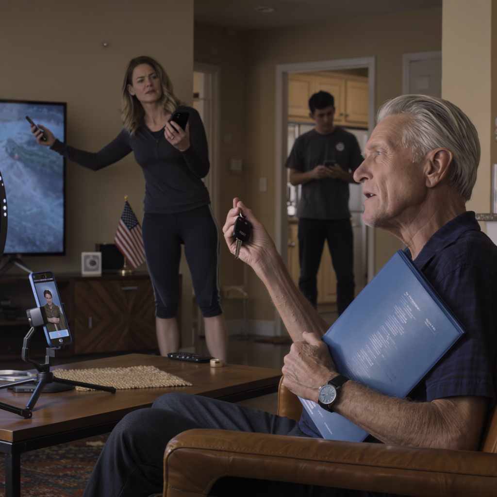 “Go to your room, old man,” she said, already twisting the ring light into position on my coffee table like she was planting a flag. “This is my space now. I’ve got ten thousand followers waiting for my workout stream.”