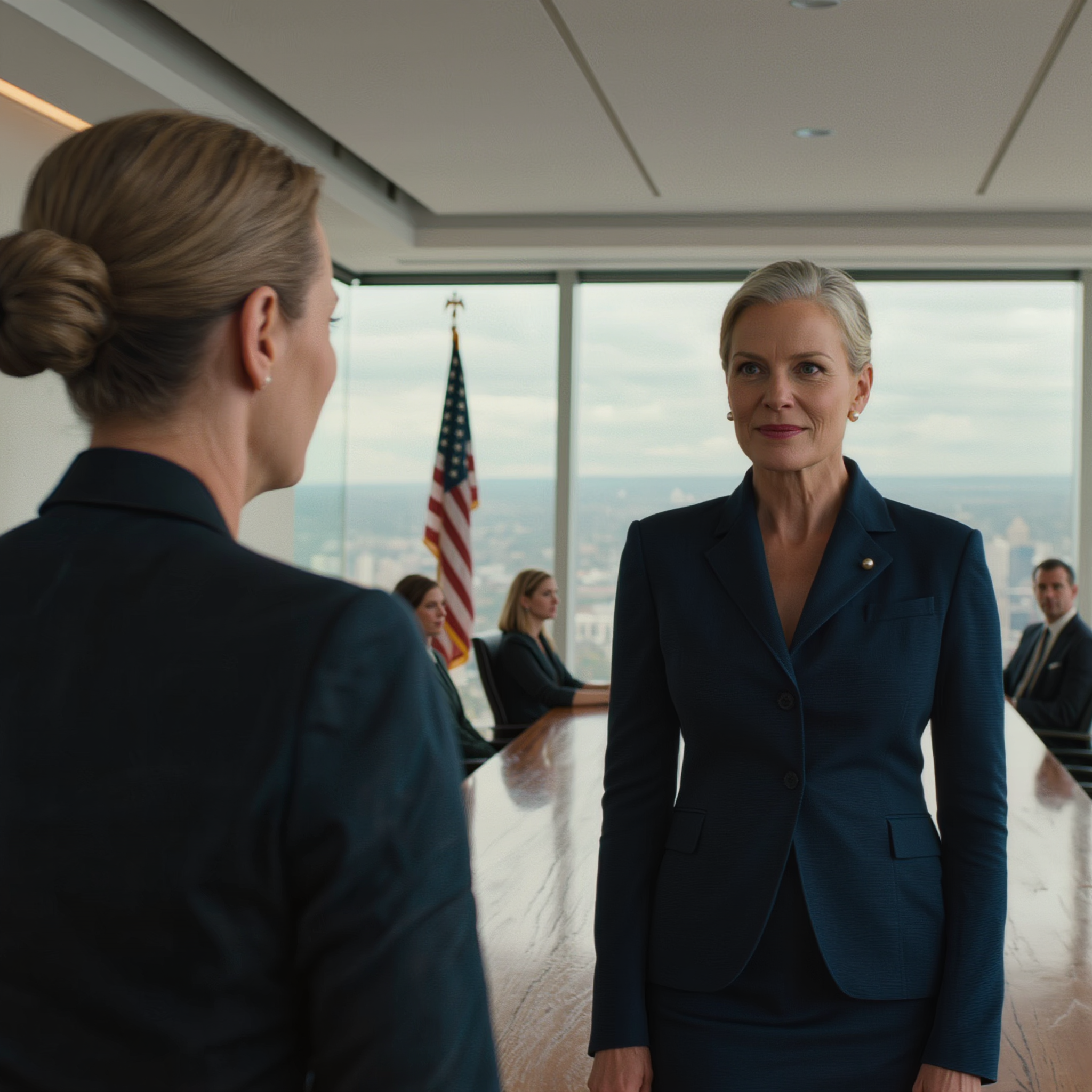 From the forty-second floor, downtown Seattle looked cold and metallic under a sheet of morning rain. Ferries moved across Elliott Bay like gray thumbprints. Inside the glass conference room, everything was clean lines and sharp edges—walnut table, black leather chairs, floor-to-ceiling windows, no softness anywhere. Julian Pierce sat at the head of the table with a closed binder in front of him. I sat at his right, hands folded, face blank.