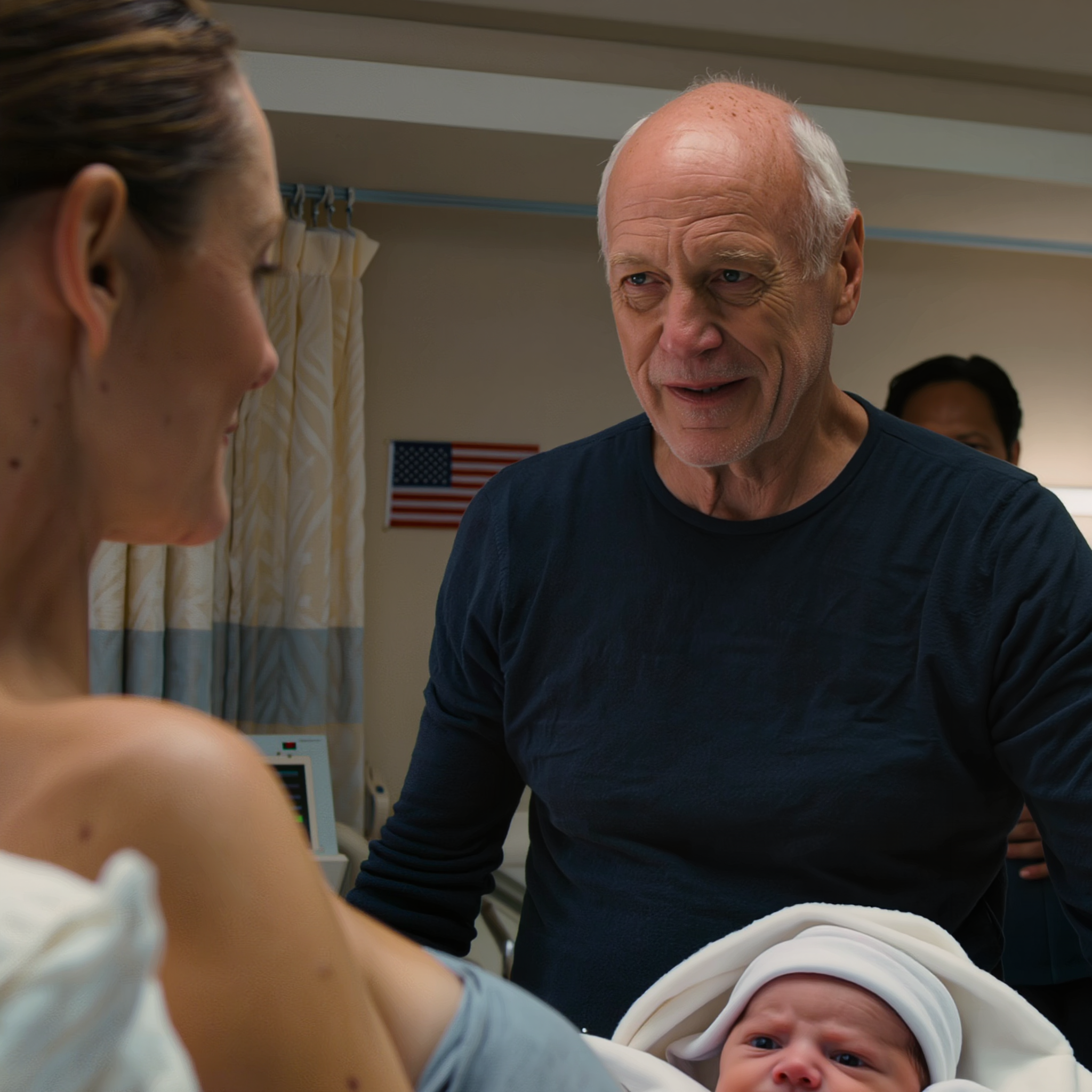 The labor-and-delivery room at Kettering Health was so warm the flowers on the windowsill had already started to curl at the edges. I had given birth six hours earlier. My daughter was asleep against my chest, all seven pounds of her tucked inside a pink hospital blanket, her cheek damp and perfect, the fine dark hair on her head still flattened from birth. Ryan was beside me with both hands braced on the armrests of a vinyl chair that looked one shift away from falling apart. My mother stood near the window with her purse clutched against her stomach. Linda, my mother-in-law, sat in the corner knitting something soft and pale with the kind of calm that makes you believe a person can survive anything.