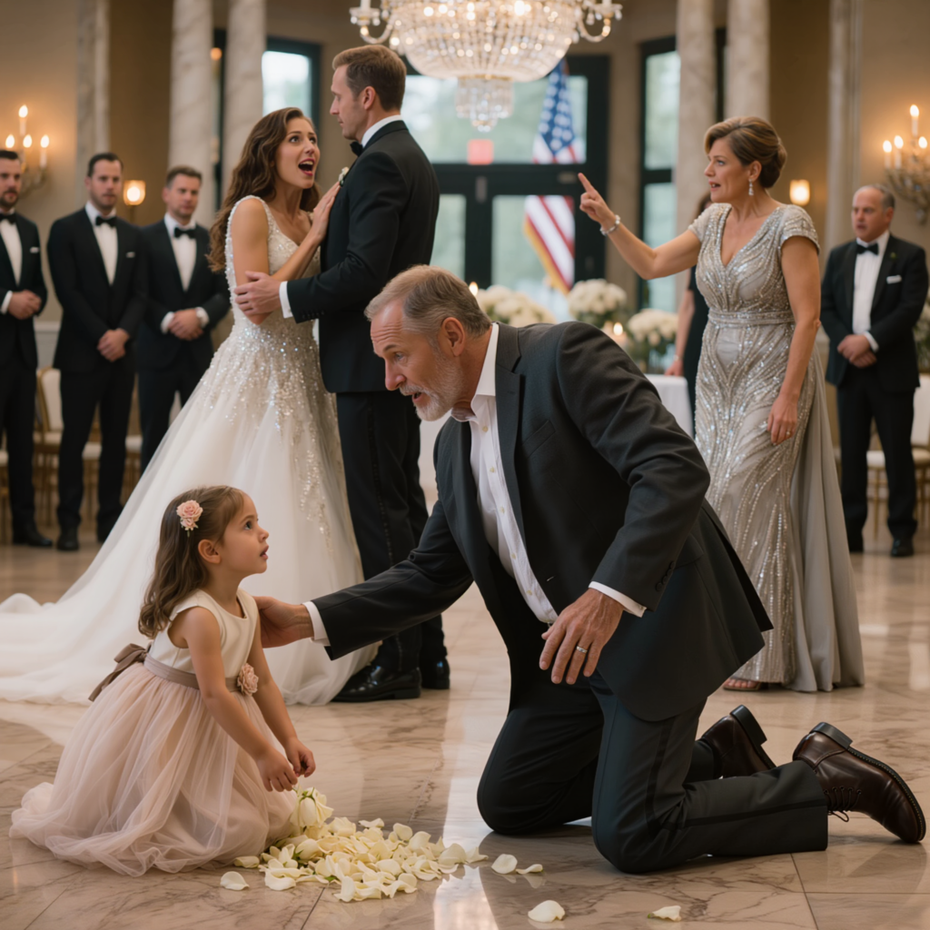 When Beverly Grant called me a disaster, I was down on one knee in the middle of the Grand Magnolia ballroom with a fistful of rose petals in my hand and a little flower girl looking at me like she thought she had broken the wedding all by herself. Crystal chandeliers burned over two hundred guests in black tuxedos and silk dresses. A string quartet was halfway through Pachelbel. The marble floor reflected everything I didn’t want reflected, including my work boots, the white aisle runner, and the exact second a rich woman decided the father of the groom belonged beneath the picture. Then my future daughter-in-law laughed. My son heard it. He turned from the altar, looked at the woman he was about to marry, and said six words so calmly the whole room split around them.