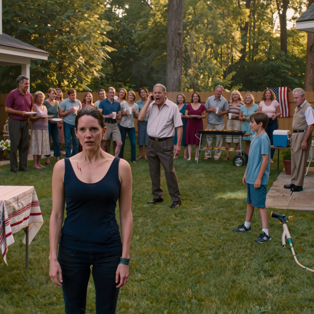 The yard had been loud a second earlier—paper plates rustling, somebody shaking ice into a plastic cup, the scrape of metal tongs against a kettle grill—but his voice cut across all of it with the old authority he had always mistaken for truth.