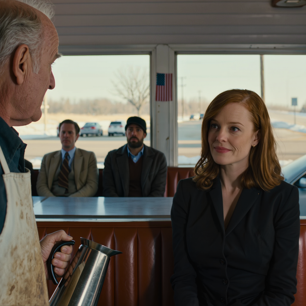 I unlocked the front door at five-thirty that morning the way I always had, feeling with my fingers for the dead bolt in the dark before flipping the switch beside the pie case. The overhead lights blinked on one row at a time, showing me the place in pieces—red vinyl booths by the windows, chrome stools at the counter, the old Formica top worn smooth by decades of elbows and coffee cups, the dead jukebox in the corner that I never threw out because Joanne used to feed it quarters and sing under her breath while she refilled sugar caddies.