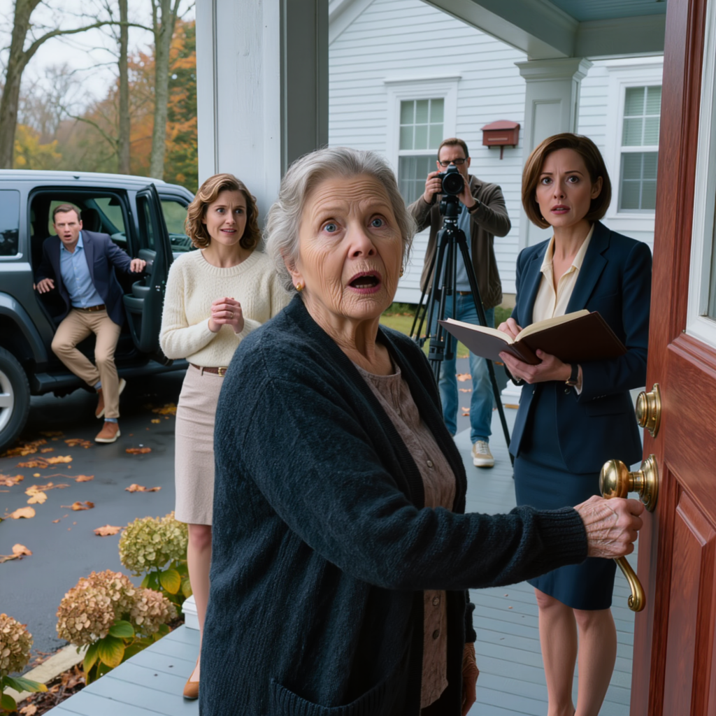 He stood on my front walk in loafers too clean for November and carried a black tripod over one shoulder like a man coming to document a crime scene he already found profitable. Behind him, a woman with a white smile and a leather portfolio looked up at my second-floor windows, then down at the hydrangeas George had planted the summer we paid off the first half of the mortgage.