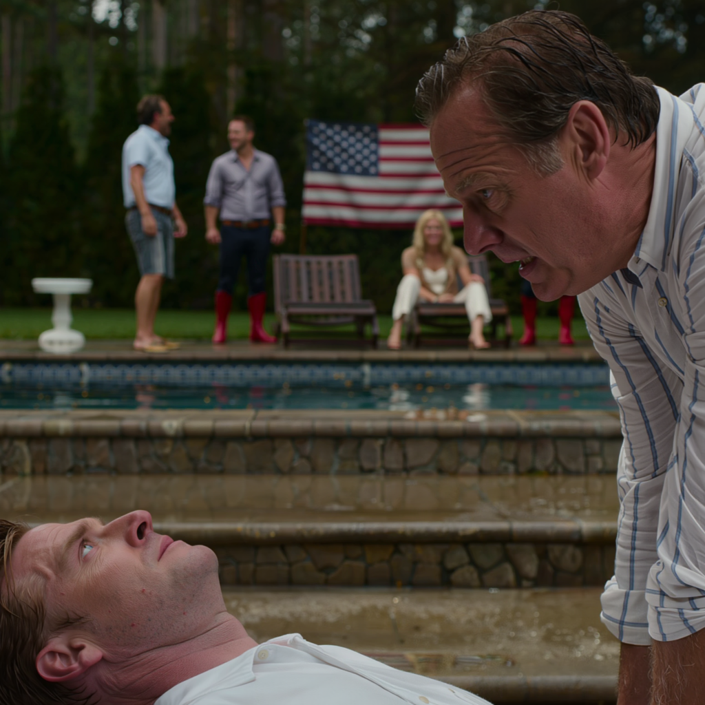 In the backyard, folding tables were set with red plastic cups, a Costco sheet cake waited under its lid near the patio door, and the pool rippled blue and indifferent under clearing skies. Marcus stood by the grill in swim trunks and a Colts tank top, one hand wrapped around a beer bottle, the other gesturing as he told a story big enough to need his whole body. People laughed before the punchlines. He liked that. He cultivated it.
